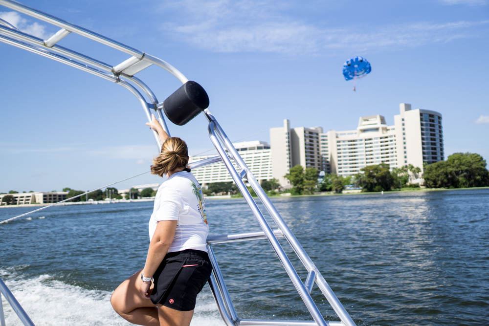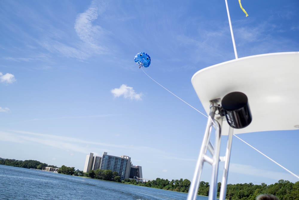 Well after an aborted trip last week due to the weather we wake up to a glorious sunny Florida morning. Today we will go parasailing for the first time over Bay Lake behind the Contemporary Resort.